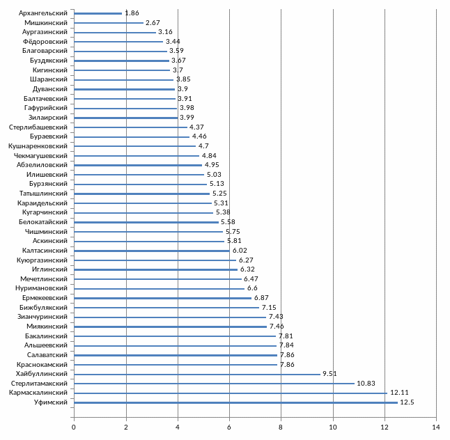Поступление новых изданий в библиотечные фонды общедоступных библиотек республики башкортостан по муниципальным районам за 2016 г. (тыс. Экз.)