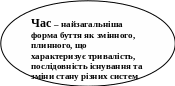 Час – це форма буття, що виражає тривалість існування об'єктів і послідовність зміни їхніх станів. Остання частина цього визначення підкреслює зв'язок часу з рухом і такою важливою рисою буття (точніше, зв'язків у бутті), як причинність (див. докладніше нижче в темі 6).