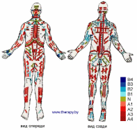 Также, исследуя тело человека, тестируя состояние мышц и мышечных групп, можно составить персональную «карту тела», на которой представлена проекция психологических качеств личности. Так, мимические мышцы показывают активность выражения чувств и социальных контактов. Мышцы, противопоставляющие большой палец и мизинец, свидетельствуют об остроте восприятия и характеризуют письменную речь.