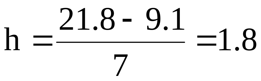 2) Разобьем весь интервал изменения измеренного признака на частичные интервалы длиной h = 2.