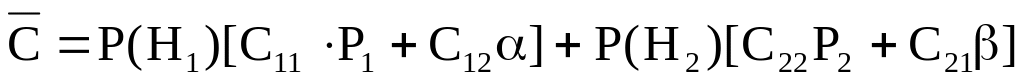Тогда средняя стоимость, которую приходится платить при многократном распознавании неизвестных объектов, равна сумме стоимостей неправильных и правильных решений с учетом вероятностей их появлений и априорных вероятностей.