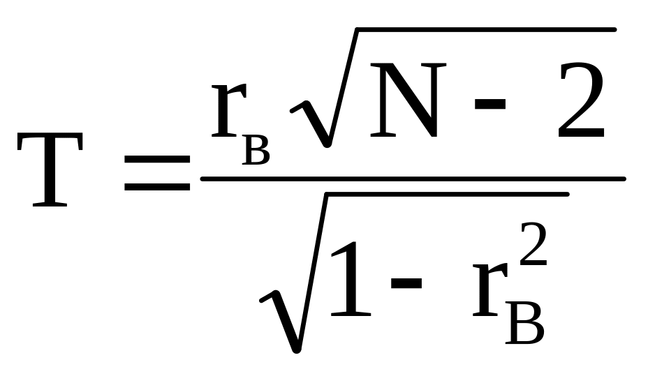 Для того, чтобы при заданном уровне значимости проверить нулевую гипотезу Н0: r = 0 о равенстве нулю коэффициента корреляции нормальной двумерной случайной величины при конкурирующей гипотезе о том, что он не равен нулю Hk : r 0,надо вычислить наблюдаемое значение критерия:
