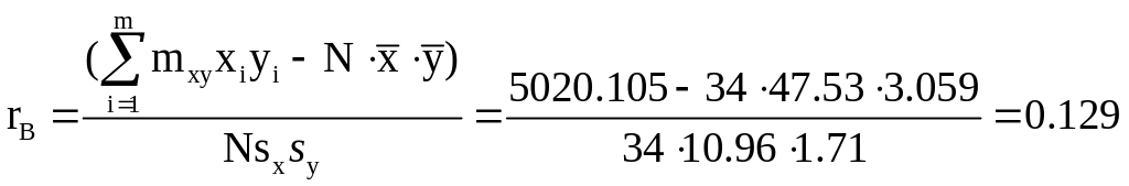 Подставим данные коэффициенты в формулу для вычисления выборочного коэффициента корреляции rв