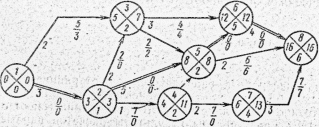 Исходные данные и результаты расчетов можно наносить непосредственно на график. Этот метод расчета сетевых графиков называют графическим.