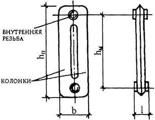 Рис. 4.3. Двухколенчатая секция радитора: hп - полная высота; hм - монтажная высота; b - строительная глубина; l - длина