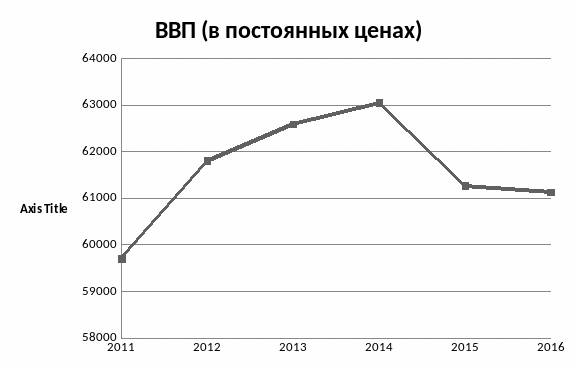 Как видно из показателей рисунка 2 с 2014 года рост ВВП прекратился. В период 2011-2012 гг. рост составил 3,5 %, в 2012-2013 гг. – 1,2 %, в 2013-2014 гг. – 0,7 %, в 2014-2015 гг. – -2,9 %, в 2015-2016 гг. – -0,3 %. В 2012-2014 гг. рост был незначительным, а с 2014-2015 гг. показатель ВВП снижается.