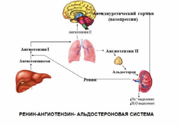 Ренин и ангиотензин представляют собой специальную ренин-ангиотензиновую систему, оказывающую значительное влияние тонус сосудов.
