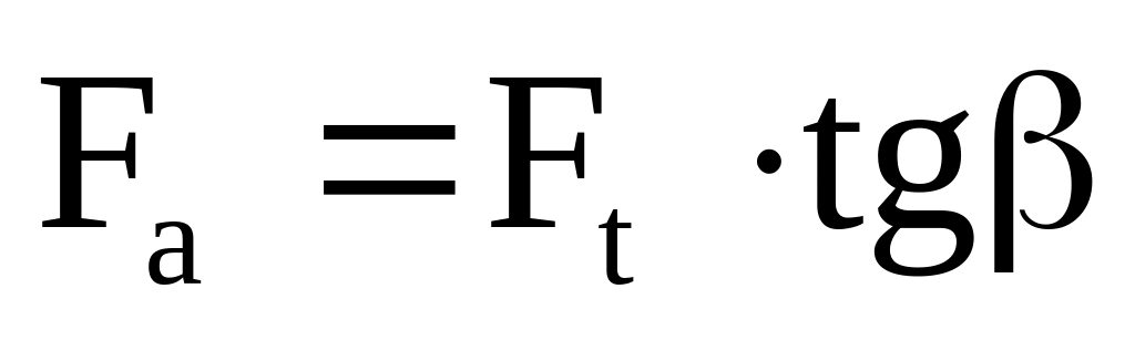 Определяем соответственно окружную, осевую и радиальную силы в зацеплении по формулам: