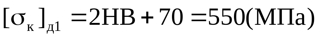 Допустимые контактные напряжения для второй ступени определяем по материалу колеса, как более слабому, по формуле:
