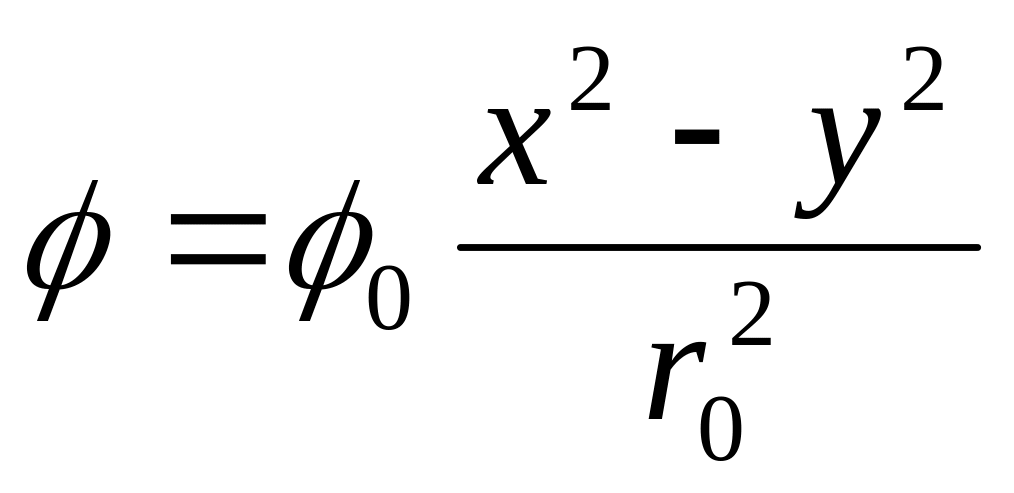 Көршілес электродқа берілетін потенциал бірдей, кері таңбалы, электродтардың арасындағы екі өлшемді электр өрісінін формуласы