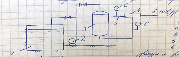 1 – цистерна хранилище, 2 – мерник, 3 – эжектор, 4 – расходомер для регул-я расхода воды, 5 – подвод воды для регул-я концентрации р-ра кислоты