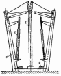 На відміну від легких великовагові стріли (рисунок 1.2), спираються своїм шпором не так на щоглу, а як на спеціальний фундамент, встановлений біля неї. У великовагових стріл вантажопідйомністю більш 20 т застосовують врізний шків в районі нока, через який проводять ходовий кінець вантажного шкентеля, спрямованого через каніфас-блок у салінга щогли до барабана вантажної лебідки. Працюють великовагові стріли або поодинці (але зі змінним вильотом), або разом з патентованими конструкціями з подвійним топенантом. Великовагову стрілу при одиночній роботі обслуговують чотири лебідки (вантажний шкентель, топенант і дві відтяжки), причому для цього найчастіше використовують ті ж вантажні лебідки, що і для легких стріл. Тому вантажний шкентель і топенант важковаговиків працюють через багатошківні талі (п'яти-, шестикратні), які називають гінями.