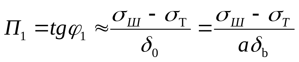 Наклон прямых // и /// определяется тангенсами tgφ1 и tgφ2 которые характеризуют интенсивность упрочнения материала при пластической деформации и называются модулями упрочнения П1 и П2,. Для углеродистых сталей первые два участка диаграммы истинных напряжений целесообразно принять по рис.9.1, б, тогда