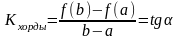 Существует точка cÎ(a;b), в которой угловой коэффициент касательной равен угловому коэффициенту хорды, соединяющей граничные точки: