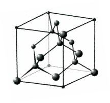 В элементарной кубической ячейке алмаза располагаются восемь атомов. Половина из них (4 атома) занимает узлы гранецентрированной кубической решетки (ГЦК), а вторая половина (4 атома) располагается в центрах четырех октантов (из восьми). По каждому координатному направлению «заселенные» октанты равномерно чередуются в структуре с «незаселенными» [7].