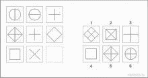 1. (Вторая и третья фигуры каждого ряда содержат по одному из элементов, находящихся внутри первой фигуры, повернутых на 90 градусов.)