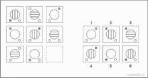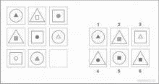 1. (В каждом ряду и в каждой колонке есть три разных типа мячей, три формы головы, три формы сапог и три положения рук.Те формы и положения, которых нет в первых двух рисунках третьего ряда, должны быть в пропущенном рисунке.)