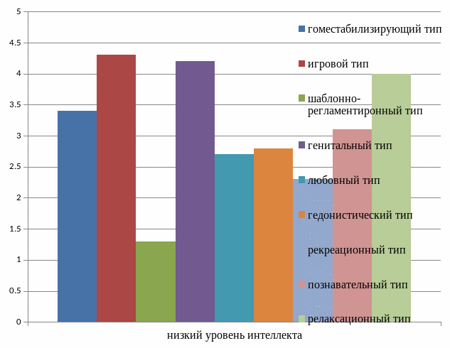 Рисунок 5 --Результаты анкетирования на выявление типов сексуального поведения молодежи. Средний уровень интеллекта.
