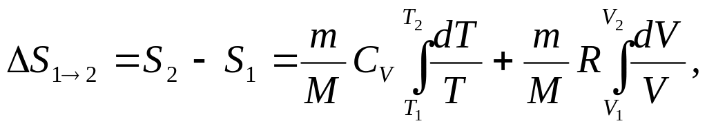 Если система совершает равновесный переход из состояния 1 в состояние 2, то, согласно (59.2) изменение энтропии