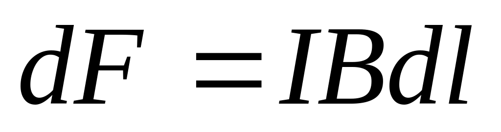 Магнитное поле (см. § 109) оказывает на рамку с током ориентирующее действие. Следовательно, вращающий момент, испытываемый рамкой, есть результат действия сил на отдельные ее элементы. Обобщая результаты исследования действия магнитного поля на различные проводники с током, Ампер установил, что сила dF, с которой магнитное поле действует на элемент проводника dl с током, находящегося в магнитном поле,прямо пропорциональна силе тока I в проводнике и векторному произведению элемента длиной dl проводника на магнитную индукцию В: