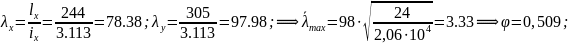 7. Стойки 7, 13. N=-107.6 кН; (┐└); γс=0,8; lx/ly=244/305 см;