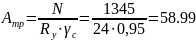 N/A=1345/62.8=22.1 кН/см2< Ry∙ γс=22,8 кН/см2.