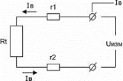 Такая схема может быть использована в случае, если сопротивлением подводящих проводов (r1,r2) можно пренебречь по сравнению Rt.