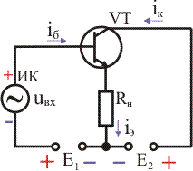 Поскольку контактов у транзистора три, то в общем случае питание на него нужно подавать от двух источников, у которых вместе получается четыре вывода. Поэтому на один из контактов транзистора подаётся напряжение одинакового знака от обоих источников. И в зависимости от того, что это за контакт, различают три схемы включения биполярных транзисторов: с общим эмиттером (ОЭ), общим коллектором (ОК) и общей базой (ОБ). У каждой из них есть как достоинства, так и недостатки.