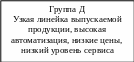 - определить малорентабельные и незначительные группы (данные группы являются кандидатами на уход из отросли или в другие группы);