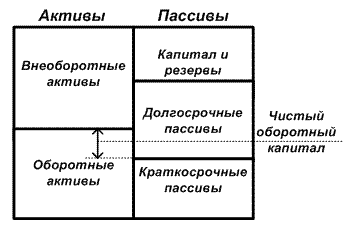 Рис. 1. Статическое представление бухгалтерского баланса Величина ОА определяется не только потребностями финансово-хозяйственной деятельности, но и случайными факторами. Поэтому принято подразделять оборотный капитал на: