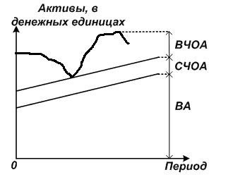 ОА и политика управления ими важны, прежде всего, с позиции обеспечения непрерывности и эффективности текущей деятельности фирмы. Поскольку в большинстве случаев изменение величины ОА сопровождается изменением краткосрочных пассивов, то оба этих объекта бухгалтерского учёта рассматриваются совместно в рамках политики управления чистым оборотным капиталом (ЧОК), величина которого рассчитывается как разность между оборотными активами (ОА) и краткосрочными пассивами (КП) (рис.1).