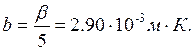 где α и β – постоянные величины, установленные спустя некоторое время. Вильгельм Вин получил эту формулу, рассмотрев адиабатическое (то есть без теплообмена системы с окружающей средой) сжатие излучения черного тела в цилиндрическом сосуде с зеркальными стенками и зеркальным поршнем. Он учел также, что частота излучения меняется при отражении от двигающегося поршня вследствие эффекта Доплера.