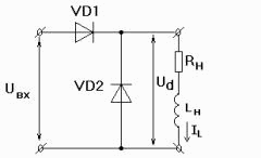 Для исключения влияния индуктивности нагрузки на форму выпрямленного напряжения параллельно к нагрузке включается обратный диод, который обеспечивает сброс реактивной энергии дросселя в нагрузку и тем самым исключает отрицательный выброс выпрямленного напряжения.
