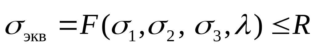 При построении вышеприведенных теорий прочности выявлялись условия наступления предельного напряженного состояния, выраженные через главные напряжения . Условия прочности по различным теориям могут быть записаны в общем виде: