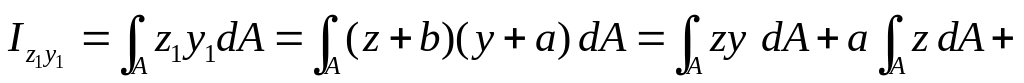 Записывая интегральные выражения для осевых и центробежного моментов инерции сечения в новой системе координат , с учетом (а) получим: