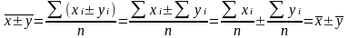 Средняя суммы (разности) двух или нескольких величин равна сумме (разности) их средних, т. е.