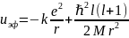 Сондықтан, сутегі атомының есебінде Шредингер теңдеуін электронның энергиясы,ал күй функциясы электронның ядроға байланысты жүйедегі қозғалысын сипаттайды. Бұл жағдайда өрістің эффективті потенциалдық энергиясы мына түрде жазылады: