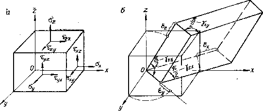 на гранях элементарного объема; б—деформации
