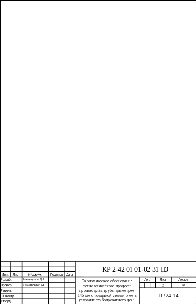 Темой данного курсового проекта является экономическое обоснование технологического процесса производства трубы диаметром 42.2 мм с толщиной стенки 3,2 мм из заготовки диаметром 140 мм в условиях трубопрокатного цеха. Цель курсового проекта: расчет основных технико-экономических показателей процесса производства сортового проката диаметром 6,3 мм и определение показателей эффективности производства.