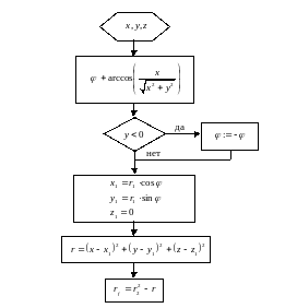Блок-схема алгоритма вычисления значения R-функции для тора приведена на рис.11.