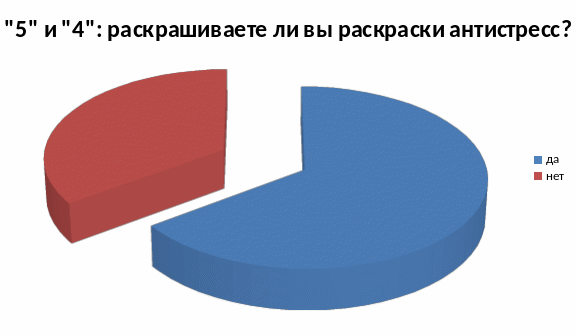 Мы раскрашиваем раскраски антистресс уже давно и постоянно. И у нас в классе есть группа учеников, которые увлеклись этой работой и объединились с нами в сообщество «Любителей раскрасок антистресс». Проведя анализ учеников в сообществе, было выяснено, что 90 % участников сообщества учатся на четверки и пятерки.