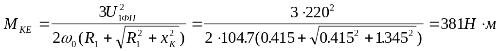 Критичний момент двигуна при номінальному значенні того, що живить напрузі: