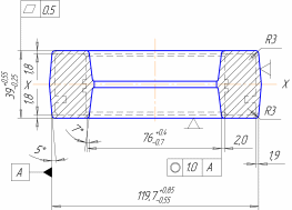 Размеры и поверхности детали имеют оптимальную точность и шероховатость Точность посадочного отверстия 7 квалитет (Н7), шероховатость поверхности Ra=0,8 мкм; допуск на отклонение от цилиндричности 0,04 мм;