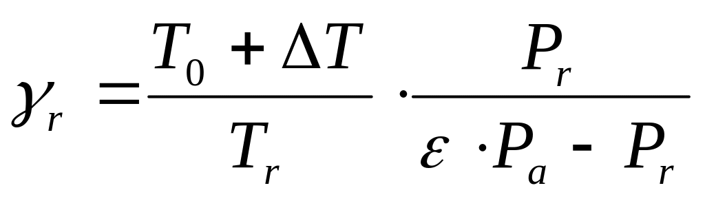 При установлении величины Tr необходимо иметь в виду, что при увеличении степени сжатия и обогащения рабочей смеси температура остаточных газов снижается, а при увеличении скорости вращения коленчатого вала – возрастает. Температура остаточных газов устанавливается в следующих пределах:
