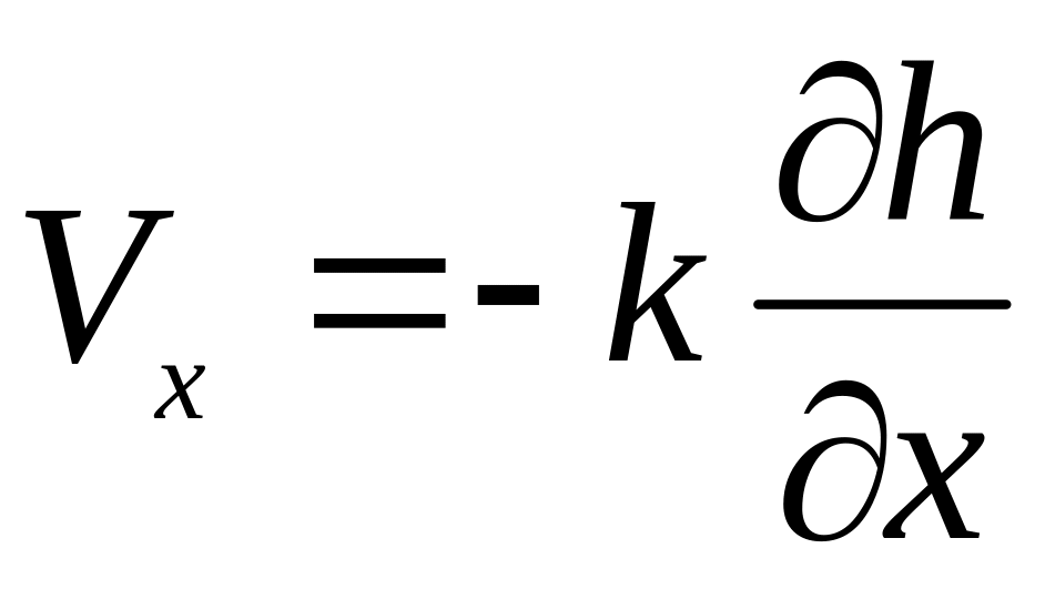 де Vx , Vy – компоненти вектору швидкості фільтраційного потоку;