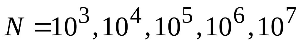 По результатам экспериментов каждое приложение выдает на экран таблицу, показывающую зависимости значений относительной погрешности и длительности эксперимента от величины N.