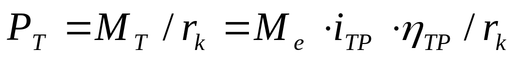 Сила тяги РТ представляет собой отношение момента на полуосях ведущих колес при равномерном движении к радиусу колеса r k