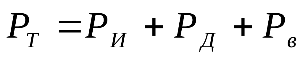 где РТ – сила тяги на ведущих колесах автомобиля; РИ – приведенная сила инерции автомобиля; РД=РК+РП – сила сопротивления дороги (РК – сопротивление дороги качению колес, РП - сила сопротивления подъему); Рв – сила сопротивления воздуха.