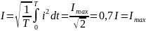 Действующее значение синусоидального тока I численно равно значению такого постоянного тока, которое за время, равное периоду синусоидального тока, в одном и том же резисторе с сопротивлением R выделяет столько же теплоты, что и синусоидальный ток.
