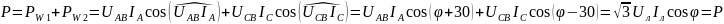 То есть сумма этих мощностей равна мгновенной мощности трёхфазной цепи. Переходя к средней или активной мощности, выраженной через действующие значения напряжений и токов, получим: